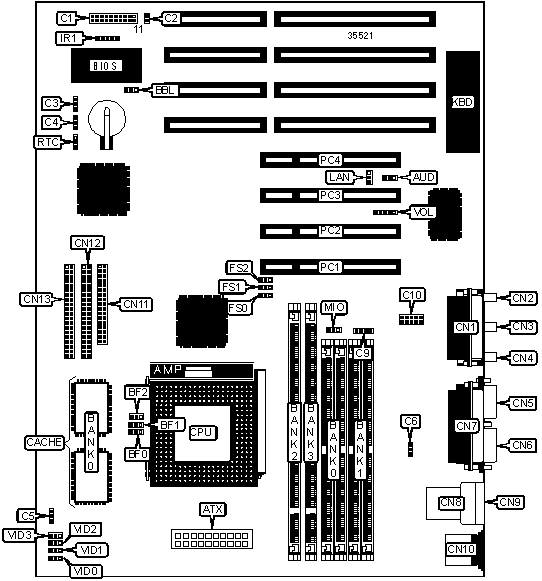 Note: Board accepts EDO memory. Do not install SIMMS & DIMMs at the same time. | ||