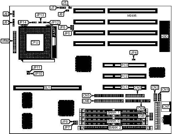 32-bit PCI slots (3), floppy drive interface, green PC connector, PS/2 mouse port, IDE interfaces (2), parallel port, serial ports (2), cache slot, VRM connector, USB connector |