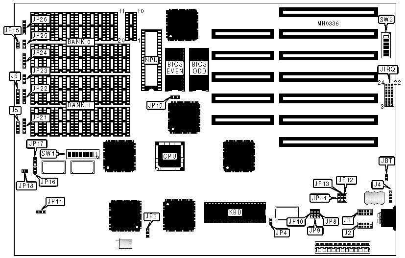 Note:41256 and 4164 chips are placed in DIP socket pins 1 through 8 and 13 through 20. 411000 chips are placed in DIP socket pins 2 through 19. See upper right corner DIP socket on diagram for orientation. | ||