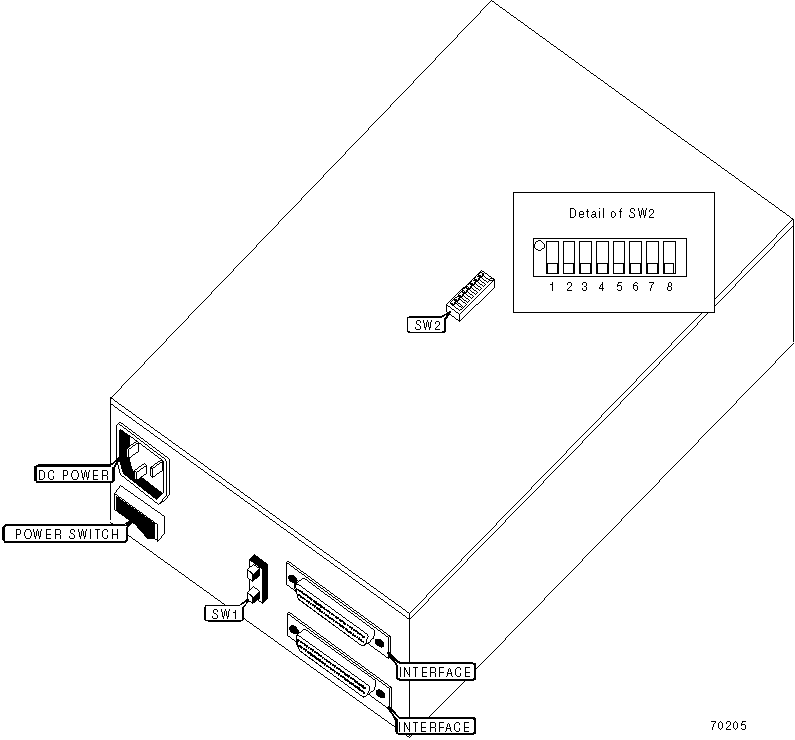 Note: To configure the tape drive's SCSI ID, you must set SW1 to the desired ID number. The SCSI ID number is viewable through the viewing window on SW1. The address is shown in hexadecimal form. |