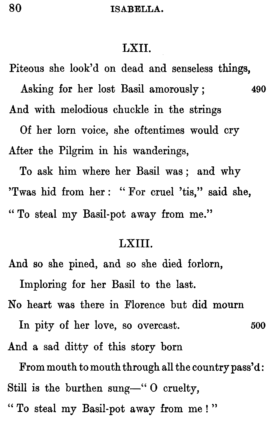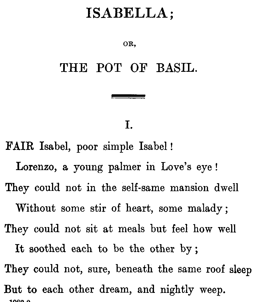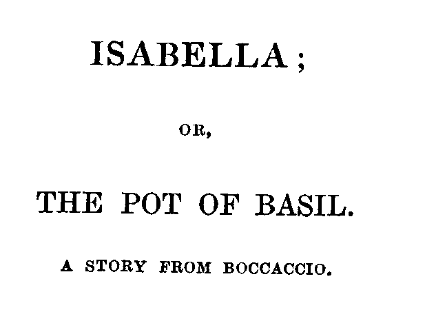 | Isabella; or, The Pot of Basil. A Story from Boccaccio |