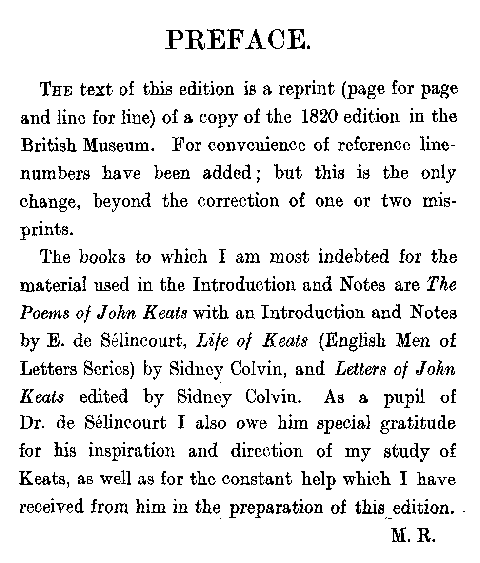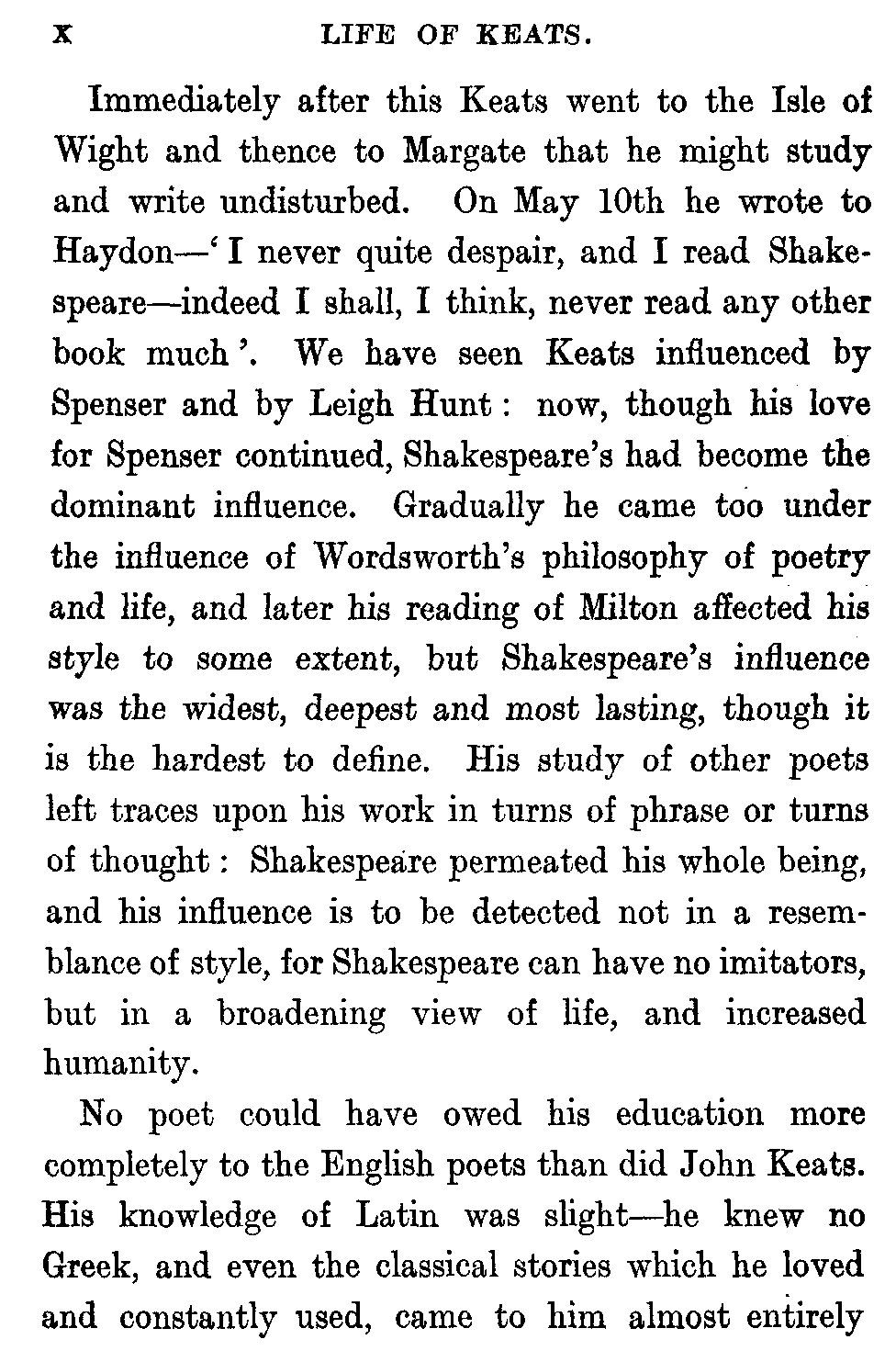 by Sidney Colvin. As a pupil of Dr. de Sélincourt I also owe him special