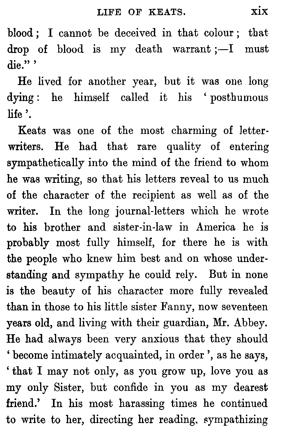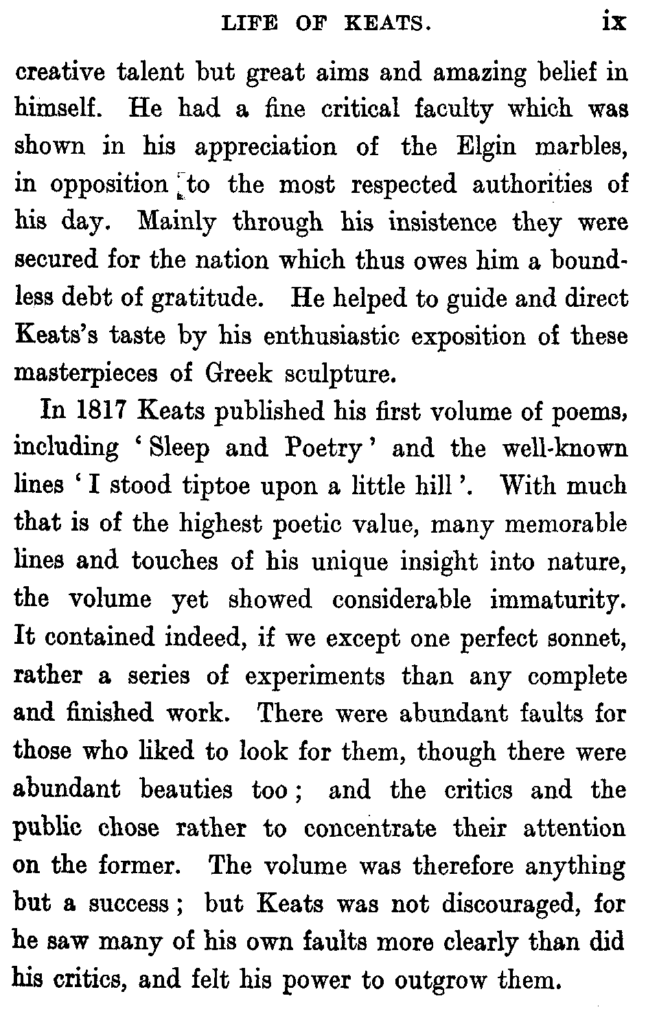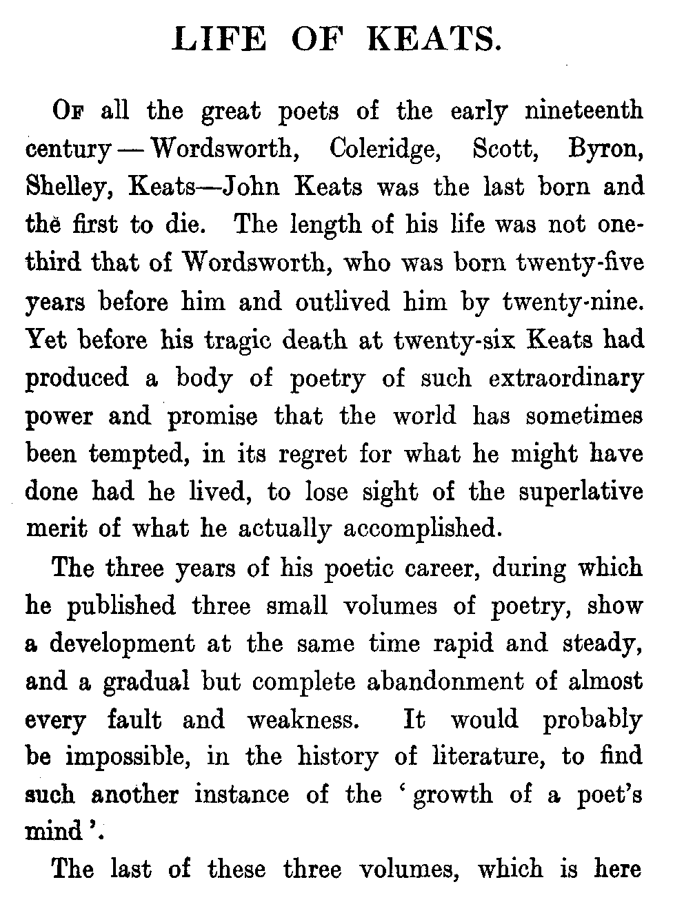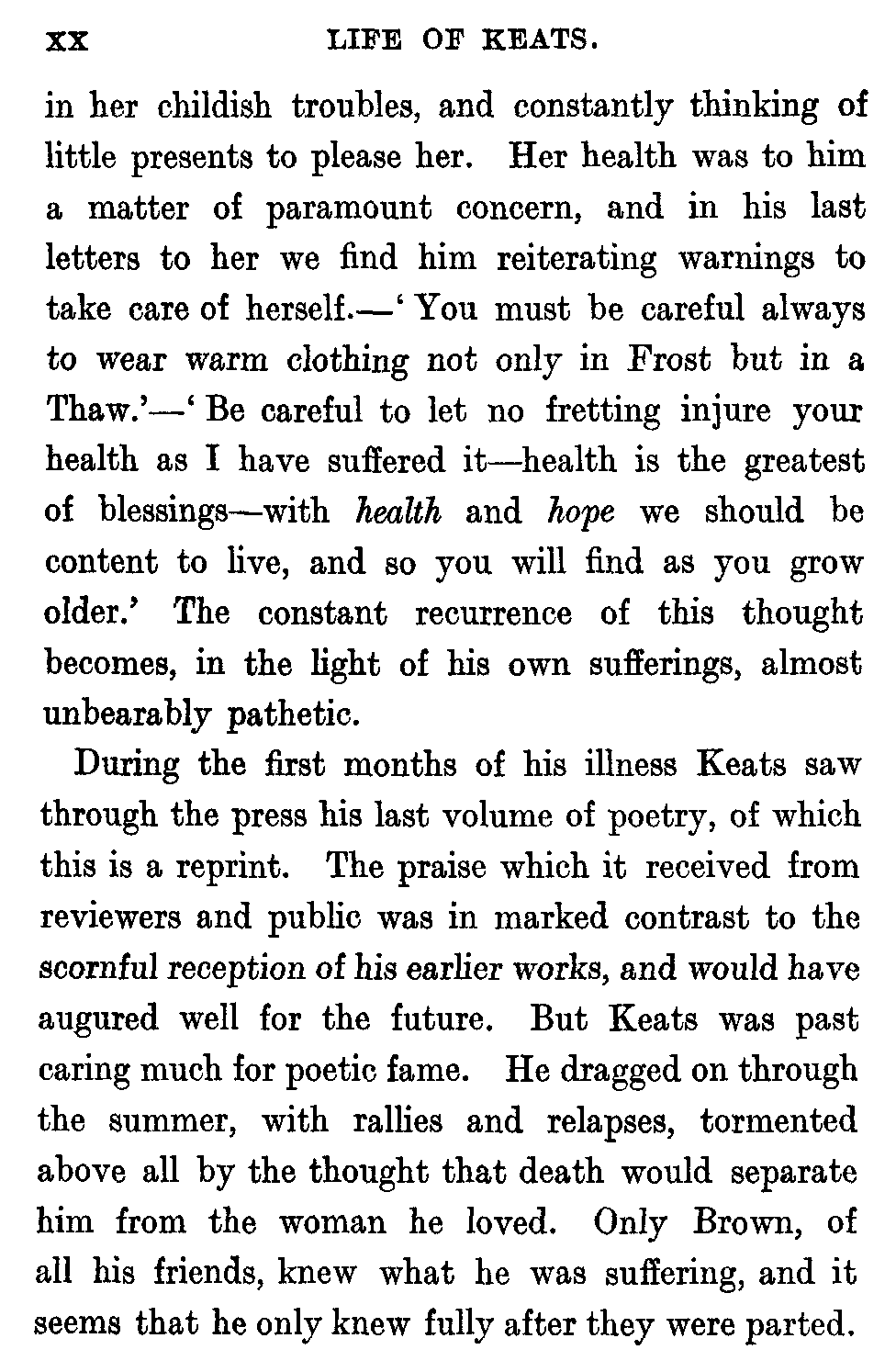 Introduction and Notes by E. de Sélincourt, Life of Keats (English Men