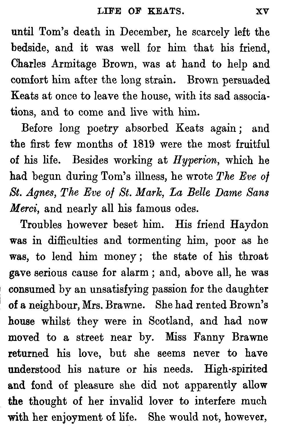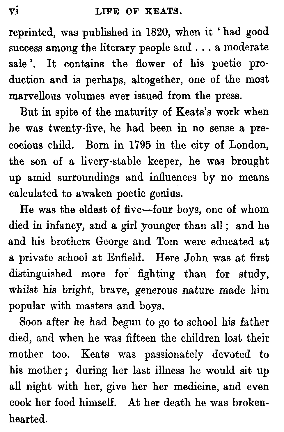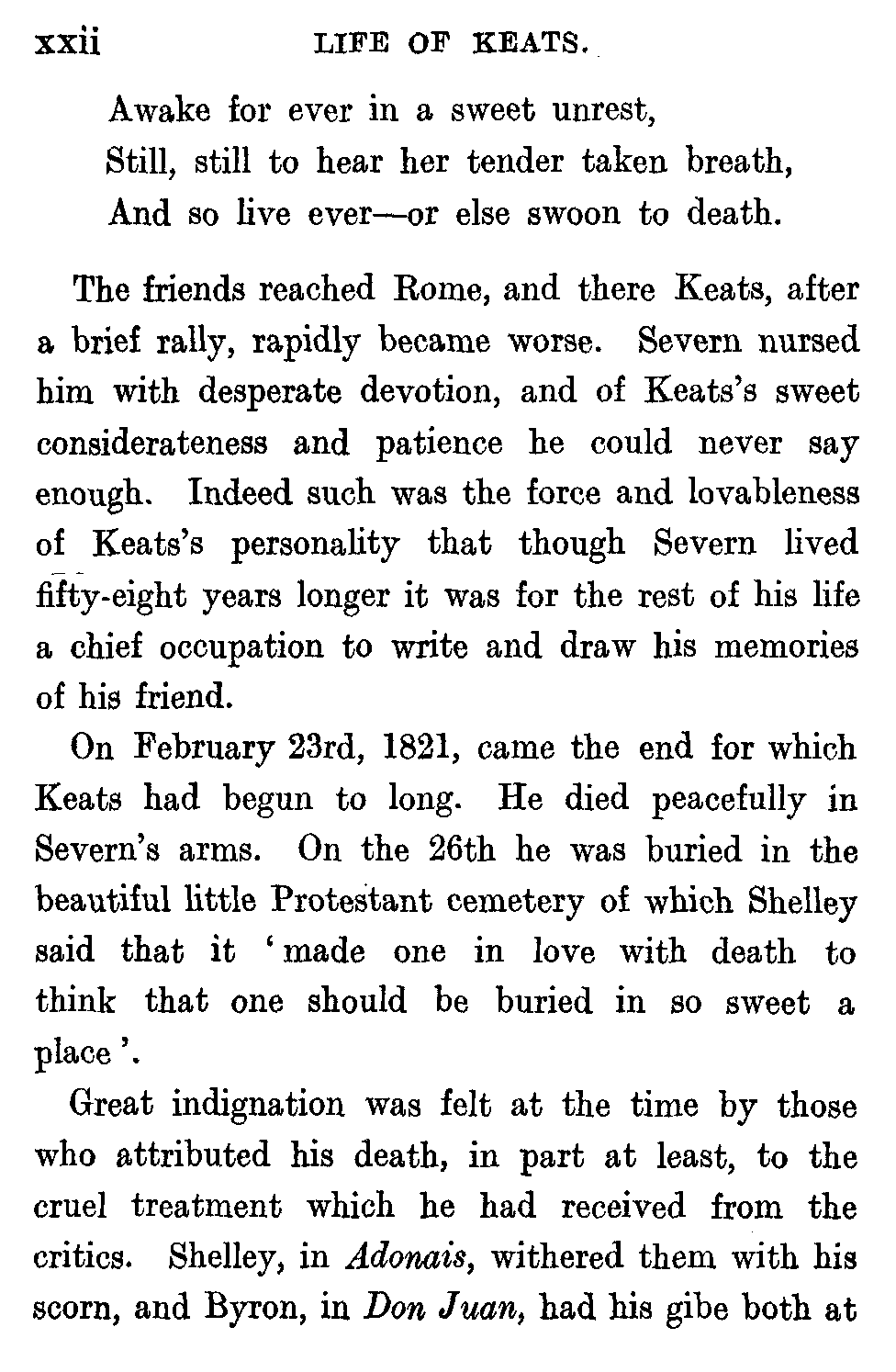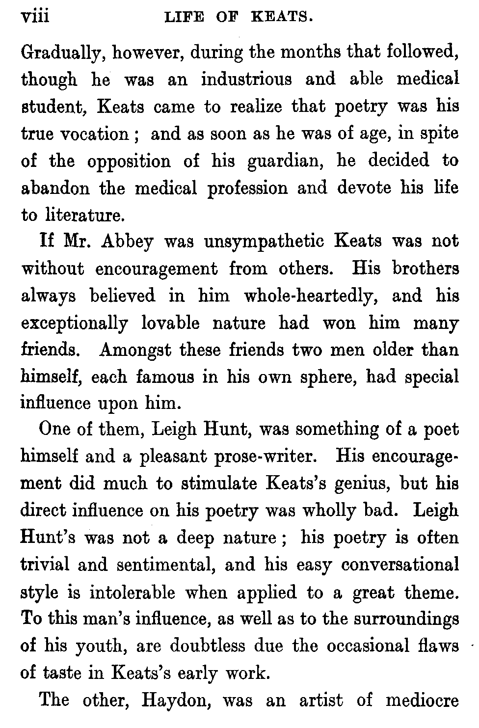 Introduction and Notes by E. de Sélincourt, Life of Keats (English Men