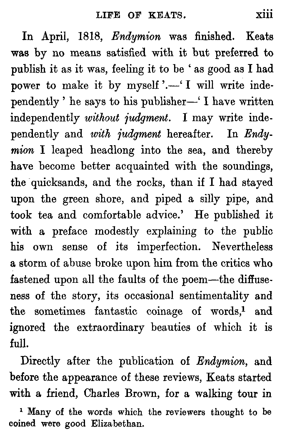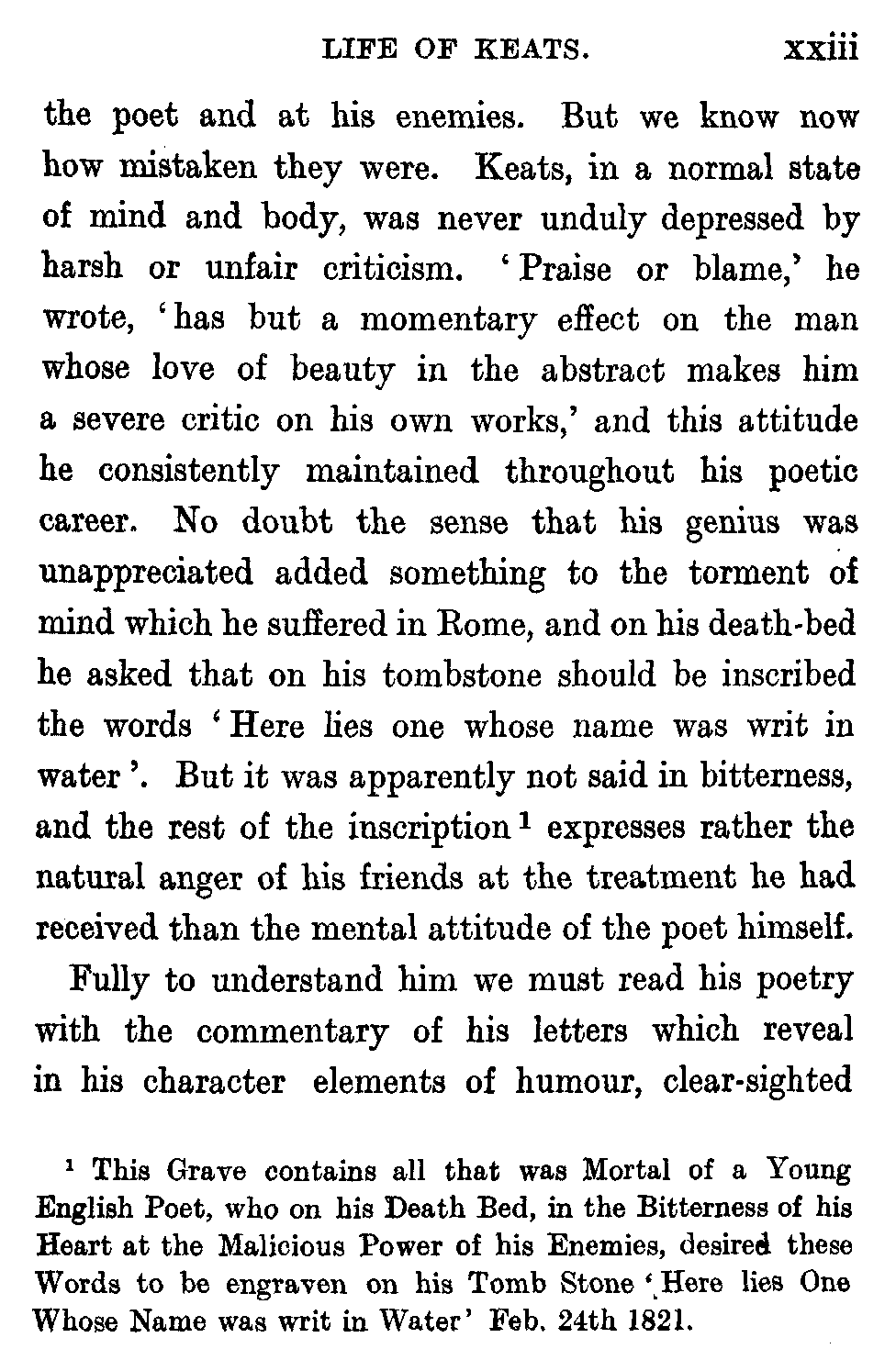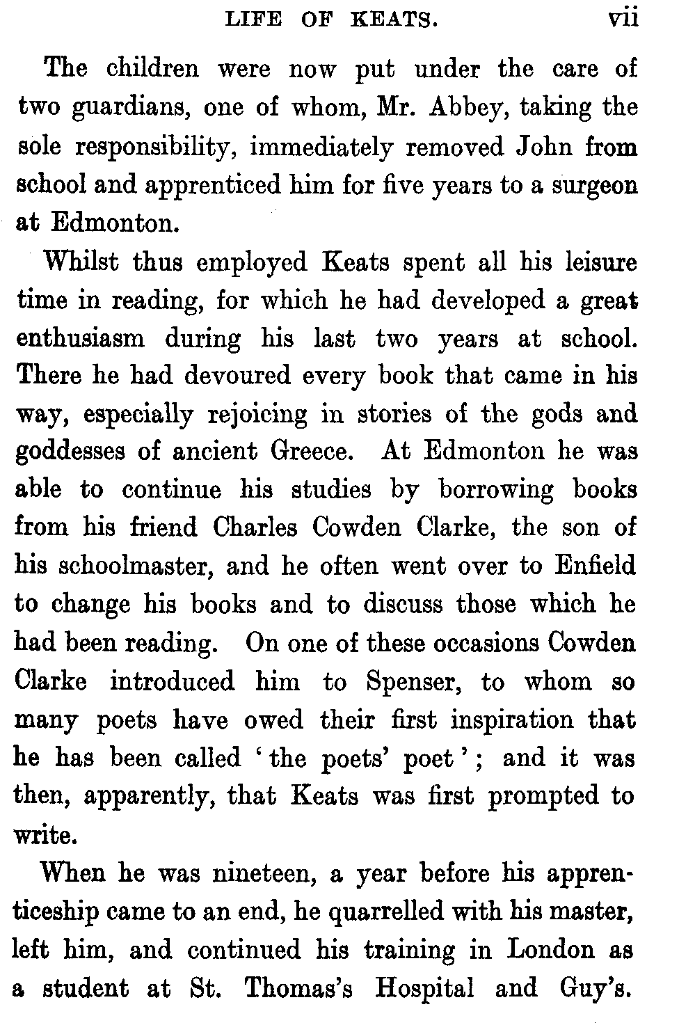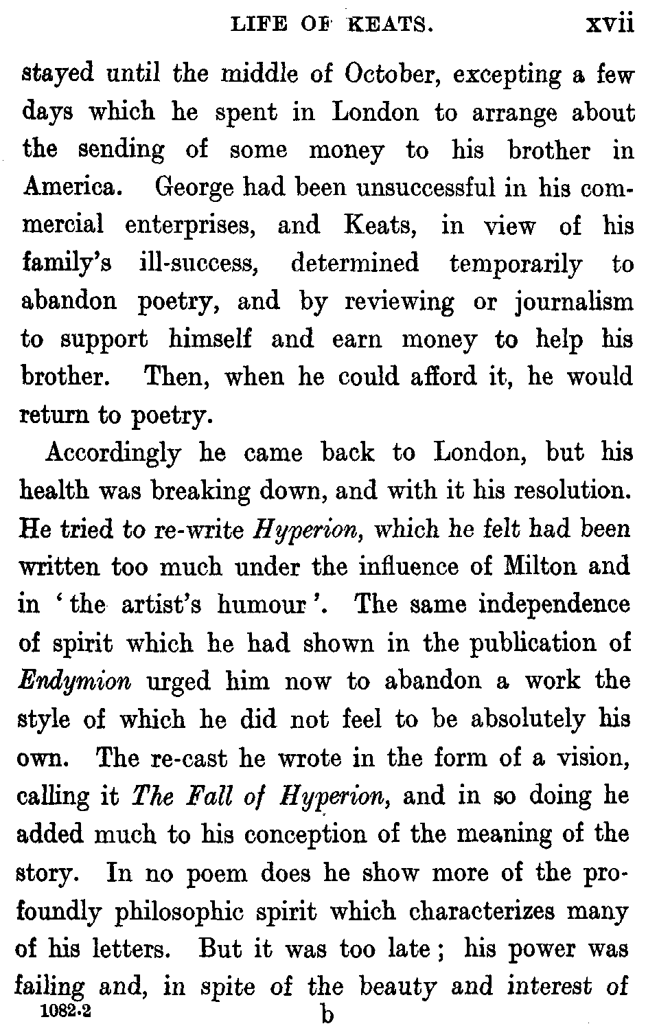 Introduction and Notes by E. de Sélincourt, Life of Keats (English Men