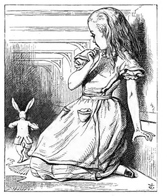 E andava fantasticando col suo cervello (come meglio poteva, perchè lo stellone l'avea resa sonnacchiosa e grullina), se il piacere di fare una ghirlanda di margherite valesse la noja di levarsi su, e cogliere i fiori, quand'ecco un Coniglio bianco con gli occhi di rubino le passò da vicino.