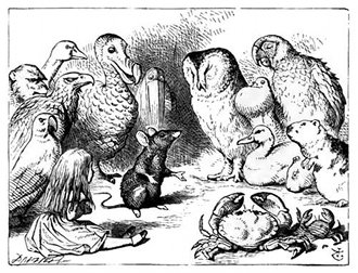 "Bagnata come un pulcino," rispose Alice mestamente, "non mi pare che la sua storiella mi secchi abbastanza."