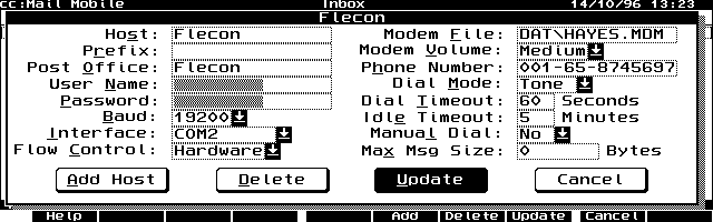 1. I opened the cc:Mail Mobile application and pressed (F10) to go to the