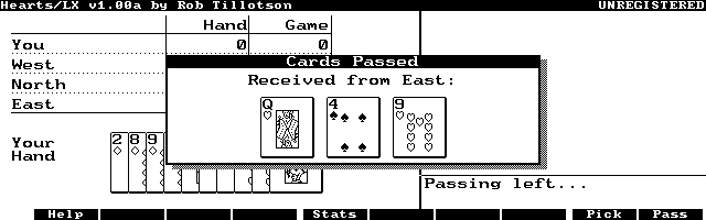 Rob Tillotson created this version of the Hearts card game specifically for the Palmtop.
