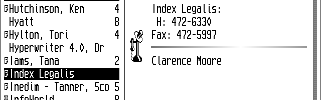 ZOOMC acts intelligently. Suppose, for example, that you start ZOOMC in Phone on your 200LX. The ZOOMC hot key blows up just the data card. Toggling with the Zoom key, you can get an index view with the data card.