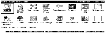 If all is working well the screen will go blank. Then App Mgr will open and close (you'll see the topcard or another open application briefly) then App Mgr will start again. The first item will open and close. You should see your App Mgr Work session. (Mine is shown in screen 3.) Press G again and you'll be back in the Games session.