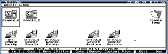 Using the remote link feature of XF requires the installation of a small program (XFS.EXE) on the remote machine. This works with IBM compatible Windows or DOS computers (including palmtops). The palmtop (client) and the server are linked using the connectivity cable. Starting XFS on the remote machine and selecting a remote drive in XF will show the remote drive in the XF file manager screen. Drives and directories on the remote machine are handled just like local drives and directories. This is very similar to using Filer to transfer files between a palmtop and the HP Connectivity Pack on a desktop computer. You can even run programs on the Palmtop using commands from the remote computer.