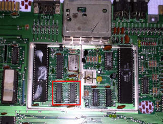 4. You'll see two 4 bit x 16K chips, labeled 1416 or something like that.