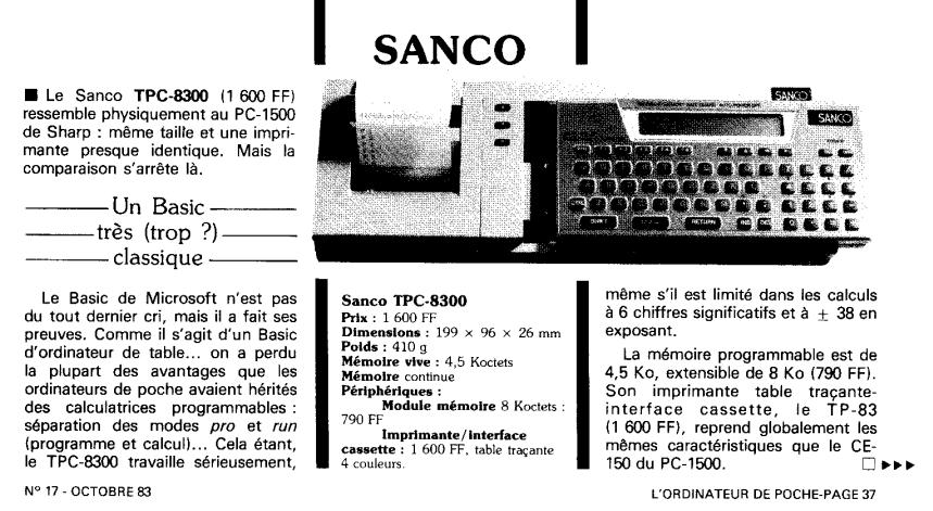Introduced in early 1983 (or late 1982) Sanco TPC-8300