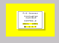so common outside former Soviet Union countries. Sintez 2, contrary to ZX Spectrum, has no ULA chip, but it's built entirely on TTL logic chips. Single-voltage DRAM chips are powered from 5V, fed directly from regulated power supply. There is also no RF modulator inside, only RGB output to connect by e.g. SCART to a TV. As a gaming machine, Sintez has joystickports for typical joysticks and one Kempston one. Near 1991, Mezon plant (also in Chisinau), started to make small quantities of Sintez 3. They were based on proprietary chip and had possibility to bump RAM to 128kB. |