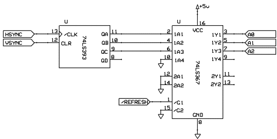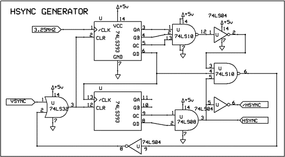 counts every hsync pulse the lower 3 bits of this count are then gates by the