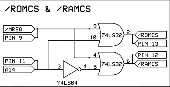 /MREQ (pin 9) used in conjunction with A14 (pin 11) to