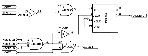 then the top or gate allows the invert bit7 through to the D input ready to be