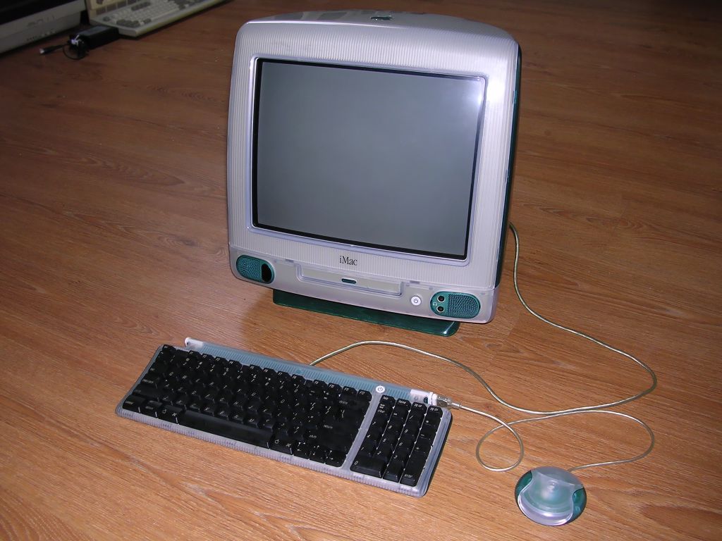The first model of Apple's iMac, another attempt to make the computer for everyone. iMac was designed to be used without computer skills required in earlier Macs. After opening the box all things needed to start were: connect keyboard, connect mouse, connect power and network, press power switch. Contrary to all earlier Macintosh computers it has no floppy disk drive. Many third-party companies offered external USB floppy drives and faster modems. Except USB and FireWire iMac was not much expandable.