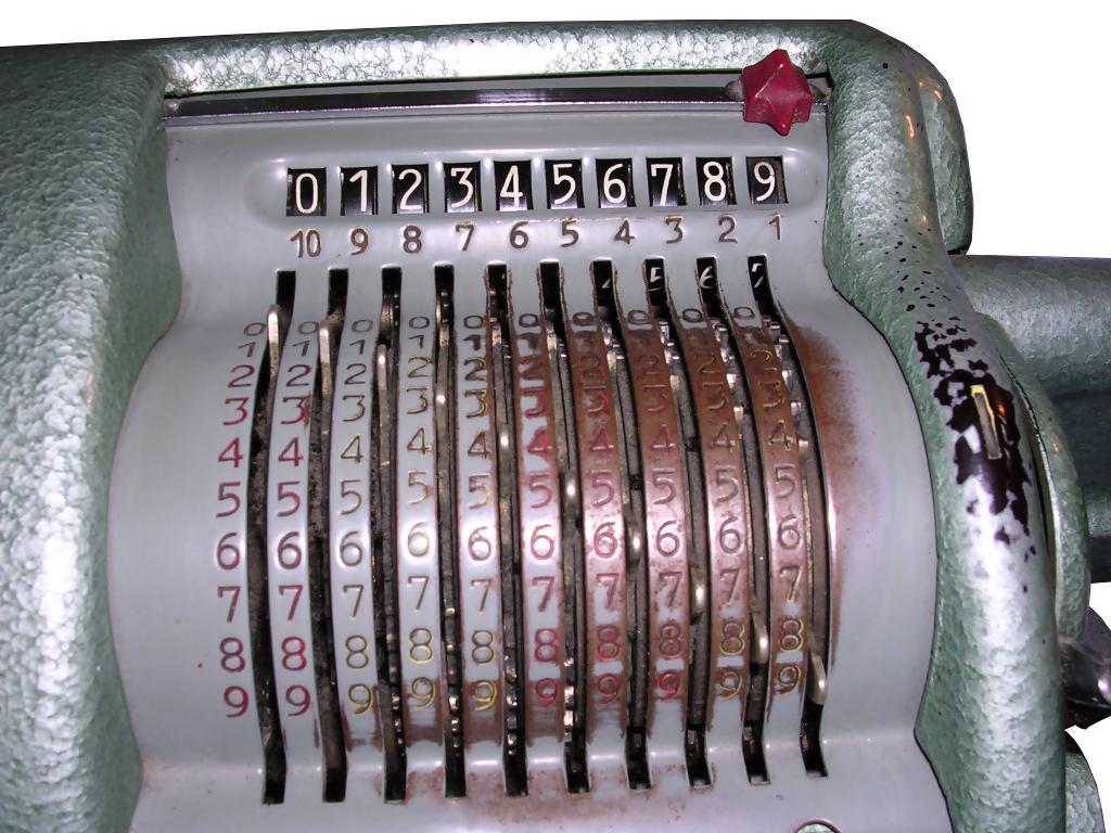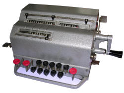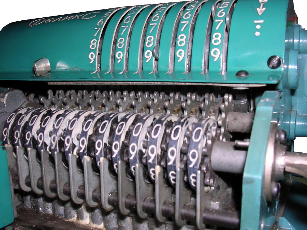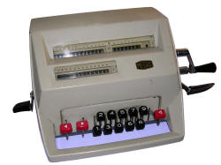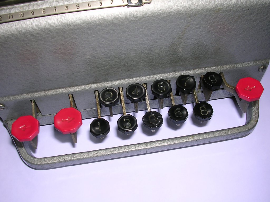 Revolution came in 1890, when W. Th. Odhner, Swedish engineer working in Russia, started to manufacture pinwheel arithmometers en masse. These arithmometers, invented 15 years earlier, were much cheaper and simpler, so they became available for offices or bureaus. "Odhner arithmometers" or "Brunsviga" arithmometers (clone) were manufactured in many factories to late 1970s. You can read more about Odhner arithmometers reading about Feliks arithmometer, as it's Odhner's clone.