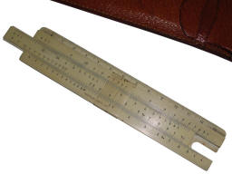| Hemmi Bambou - Patent 58115 This Japanese slide rule was used by my Grandfather. It has all basic scales plus trigonometric on reverse of slider. It's made of bamboo wood, so it is self-lubricating and it still slides smoothly without jams. Cursor is made of metal and celluloid. It was manufactured between 1917 and 1927. But some other sources state that these cursors were used until 1930s. Hemmi, from Jiro Hemmi, was a well known brand in manufacturing these instruments. In 1910 they started manufacturing slide rules from bamboo wood, making it self-lubricating and preserving geometry. In 1912 Hemmi got a Japanese patent for a slide rule made of wood with laminated, celluloid scale. In 1917 they started to use Sun trademark for foreign market. In 1928 company changed its name to Hemmi Seisakusho & Co. Then they started labelling cursors "Sun Hemmi". In 1930s they manufactured thousands rules every year. Since 1928 some Hemmi rules have P and Q scales. Seen on a few photos, but I have no idea what they could be used for. As most Japanese companies, Hemmi's business disappeared with starting of world war II. Some small quantities were manufactured until 1950s (last ones even in 1970s), but it was not a big production. More: MANUAL, incomplete, and in strange format (photo of a museum item). |