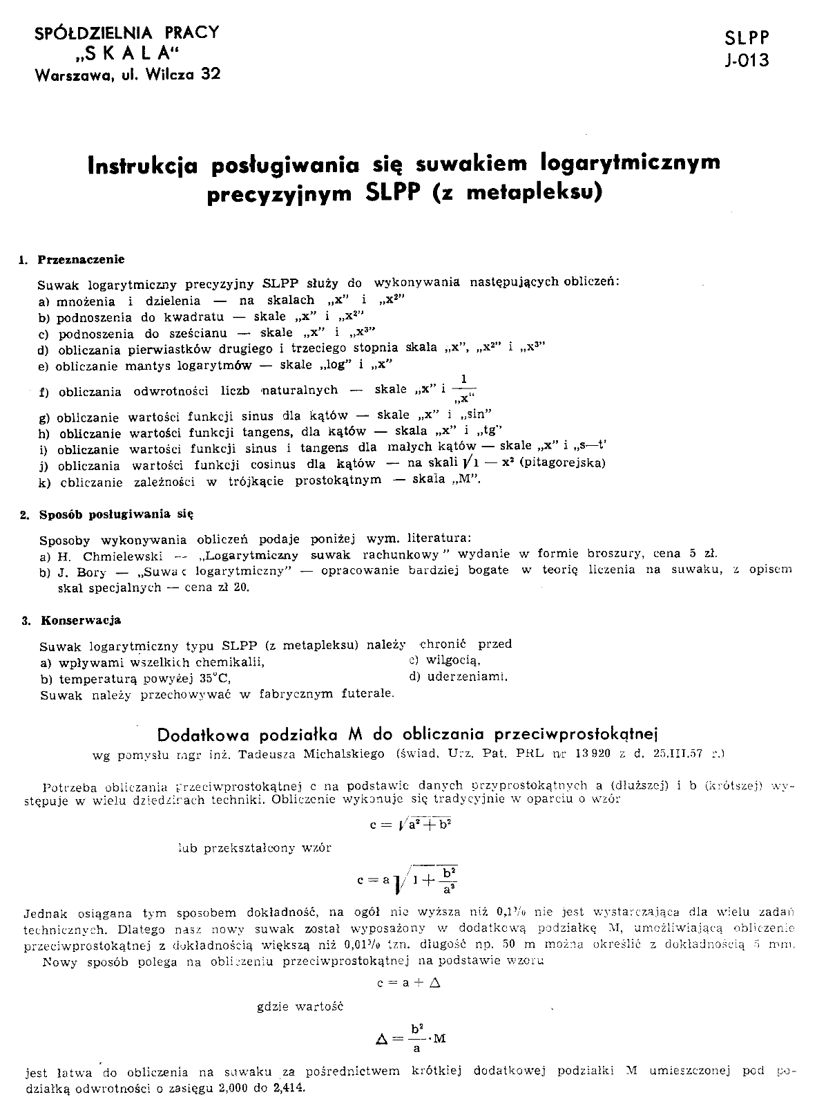 - S, T and ST trigonometric scales, located on sliding part (popular in