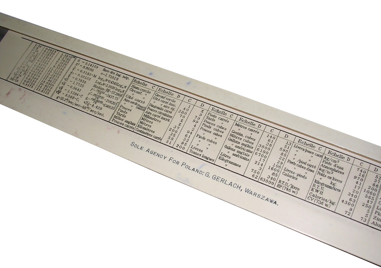 | Some conversion tables. Notice Polish "Gerlach", it's not cutlery manufacturer but Gustaw Gerlach - clockmaker. | Under the slider | Trigonometric scales |