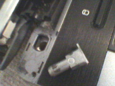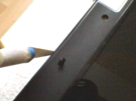 bottom. The tab on the right of this part has a hole, in which a screw comes