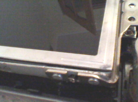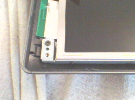 In the left photo (lower part of hinge), you can see my broken hinge and how it's secured to lid. In the right one a screw securing upper part of lid and one of 4 screws keeping hinges to LCD panel. These look like this: