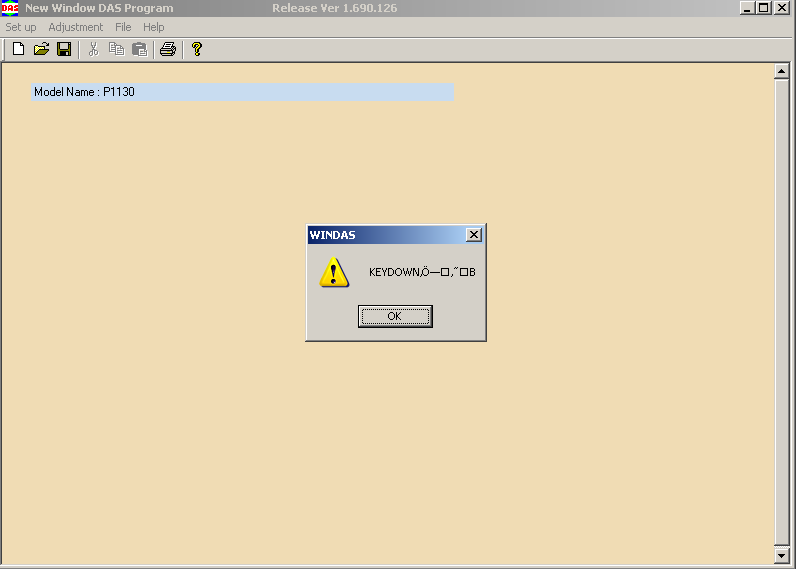 | Boot screen of the program - not much is shown in main windos | It's so debug version that it even reports some keys! Here are "Windows" and "Menu" keys. |