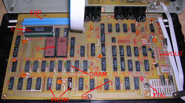 screen when turned on, 64kB of RAM and most logic made on 74 chips. PROM