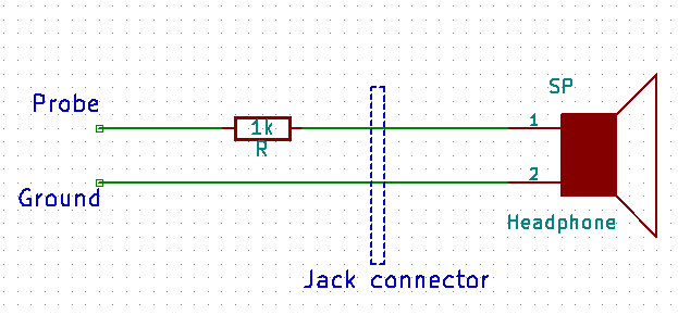 headphone and resistor. Connect + of headphone to 1kOhm resistor and ground to