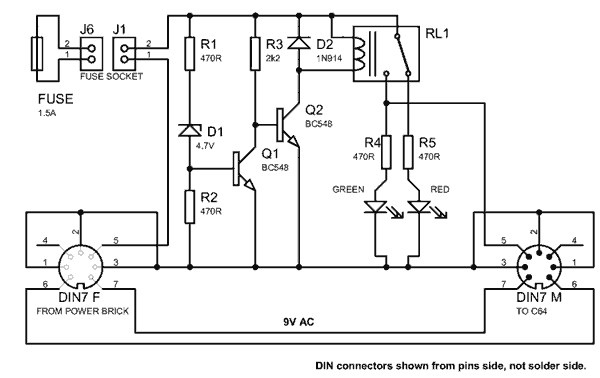 Zener Diode D1 monitors DC level. If it exceeds its voltage and the voltage of opening Q1, it'll close Q2 and open the relay, disconnecting dangerous power line from the computer. Red LED will light up. Don't worry about too high voltage on red LED - 470 Ohms is enough for 11V.