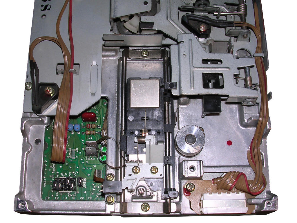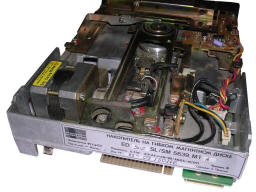 Head moving mechanism: Stepper motor, worm screw in a horizontally-placed disc.