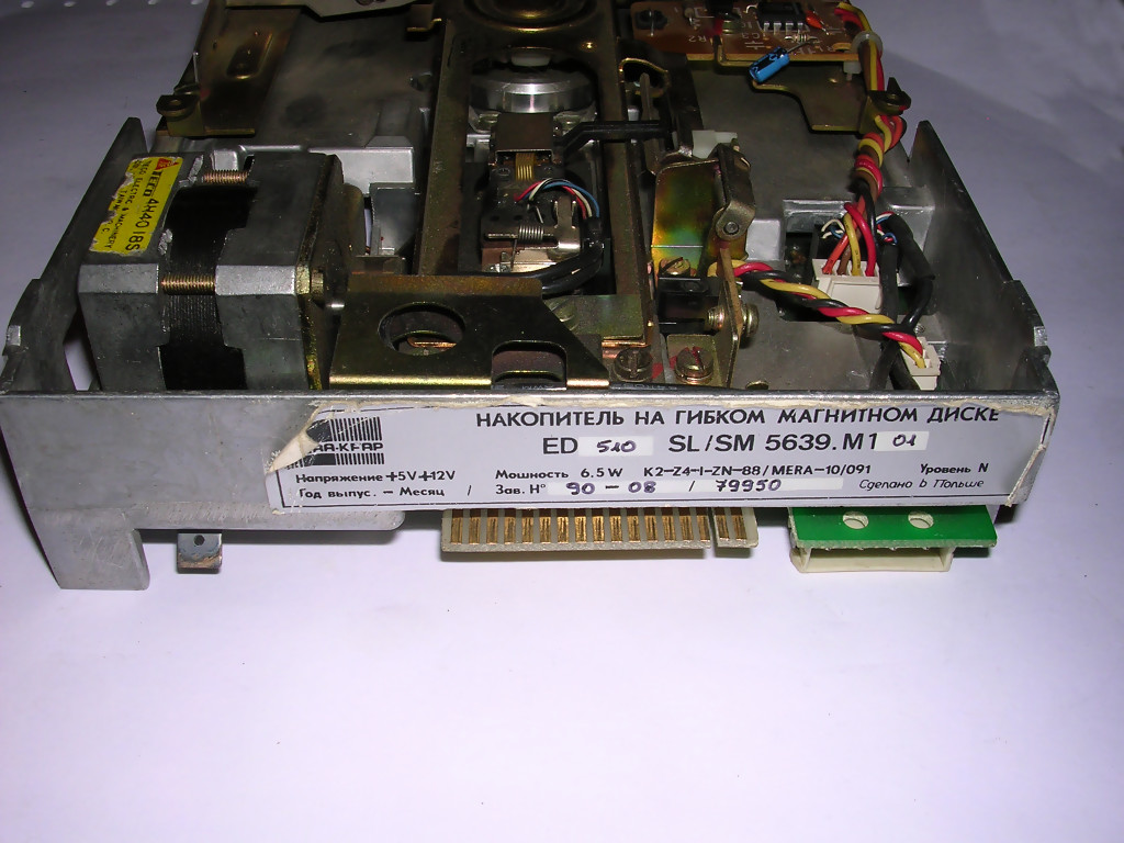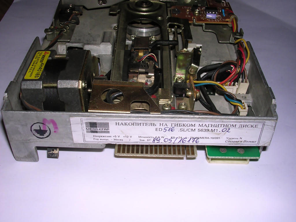 Soviet Union computers were equipped with these. They were unreliable because worm screw was not deep enough. In Poland it was used in some Soviet measuring devices, in Soviet Union in Agat computers. Interface more or less compatible with typical one, but as in all Eastern block equipment connector and pinout is different. "M1" had 40 tracks, while "M" had 35. Made in Bulgaria.