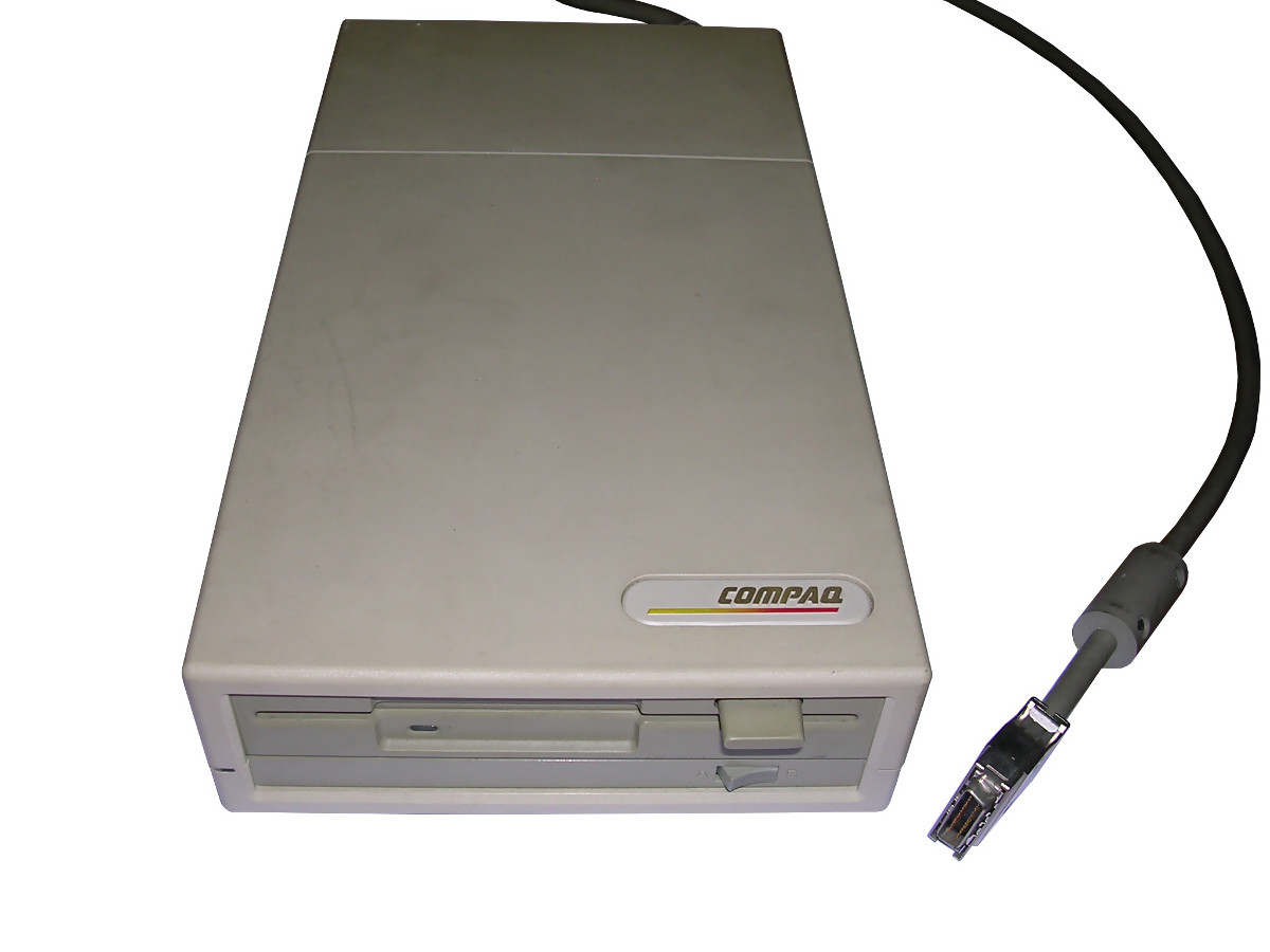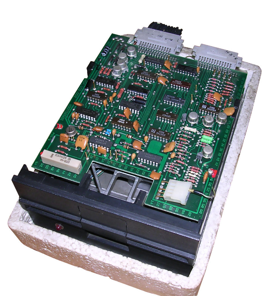 Electronics is mainly in SMD, as the drive must be small.   Canon MD5501 with low-profile panel in case with AC power supply, as external FDD for Compaq laptop.