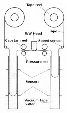 | Information: PT-3 was common tape storage device used with Odra 13xx computers. It was connected by serial channel and allowed theoretical maximum 96kb/s transfer speed. Capacity of one reel varied, there were few sizes of reels and few densities allowing to store 8-16MB of data on large reel. Theoretically it was possible to put more, but poor quality of tapes caused many errors. PT-3 used 2 vacuum chambers to compensate reel inertia and keep the fragile tape in one piece during quick spin direction changes. |