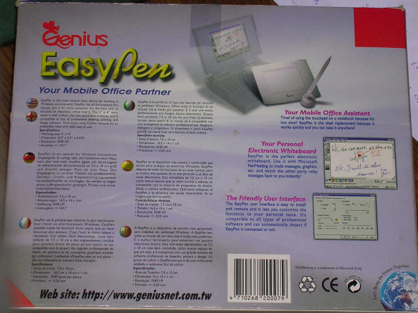 detection and small area. This tablet, when plugged in, can operate like a mouse or can be configured with driver. It was bought in Germany. In a box, there is a print of an e-mail sent in 1999 about incompatibility with Windows 98. Genius (KYE Systems Europe) recommended running GTEST.COM DOS tool. I tested it in Win95 and it works. |