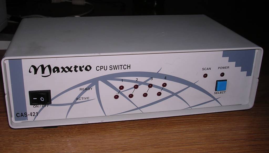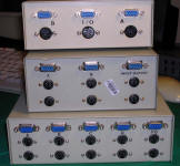 If you have a few computers but only one monitor, keyboard and mouse, in lab, workshop or server room, KVM is a very useful device - it allows to switch one console between different machines. There are small switches to connect 2 computers switched with button, even smaller ones which use key combinations, or server room-grade machines to connect 8. They may be used to switch VGA, PS/2, and later even USB.
