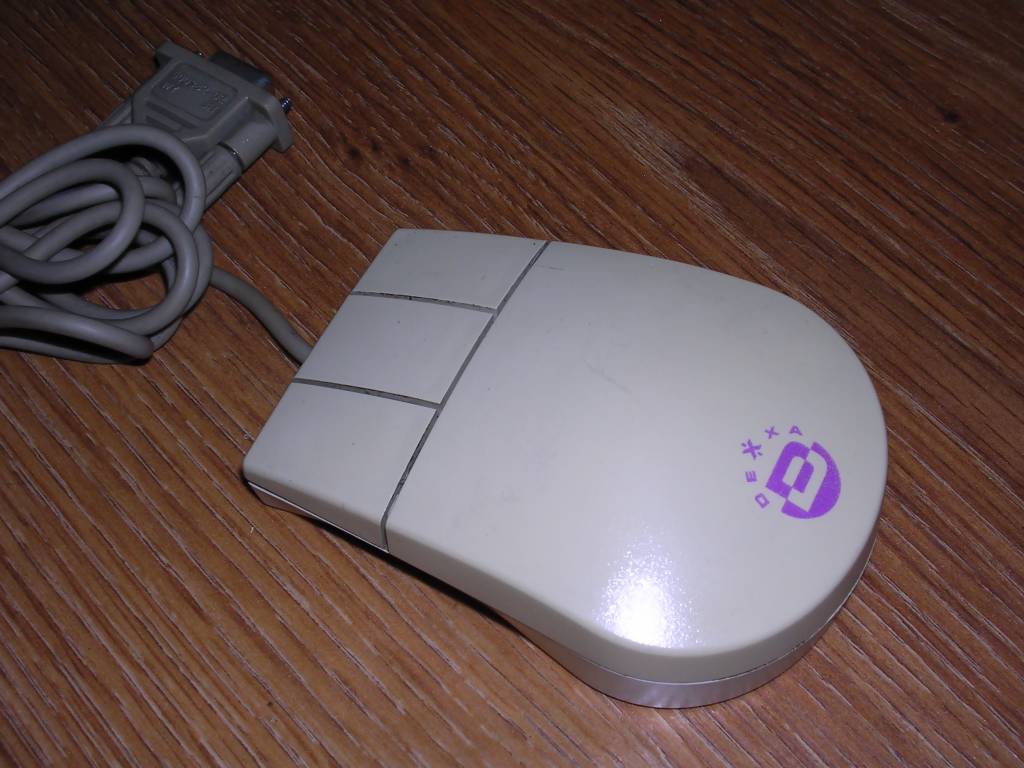 | Information: Dexxa was a company which made many products on licenses. The M31 has a Logitech logo underneath, so it was probably made on license and sold under Dexxa brand. It has 3 buttons with quite poor contacts, ball made only of plastic (very light and with not so good accuracy) and serial port connection. It operates in MS Mouse / Logitech standard. This mouse was quite cheap and came with a mouse pad, so it was frequently imported with PC clones successfully pretending a high-end machine. On the disk, there is of course a Paintbrush program too. |