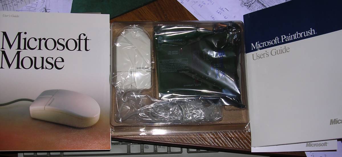 | Information: In early days of PC computing, there was no standard interface for mouse. Logitech and Mouse Systems went with serial port (but different protocols). IBM went with keyboard port extension called PS/2. Microsoft went their own way with inPort mouse or Bus Mouse - a mouse which needed ISA board. The mouse itself was simple in construction, giving alternating-phase signals at output (like Amiga's one). All decoding was made by ISA board with dedicated microcontroller chip and not much more. This was another typical example of vendor lock-in attempt. This mouse started another tradition: Adding graphics software to mouse packages. Microsoft added their Paintbrush program, other gave e.g. Rainbow Paint. My unit is in a brand-new condition - it is in a box, all envelopes are sealed, manuals are present, even disks are in a sealed envelope with license. I opened foil only to check is everything inside. |