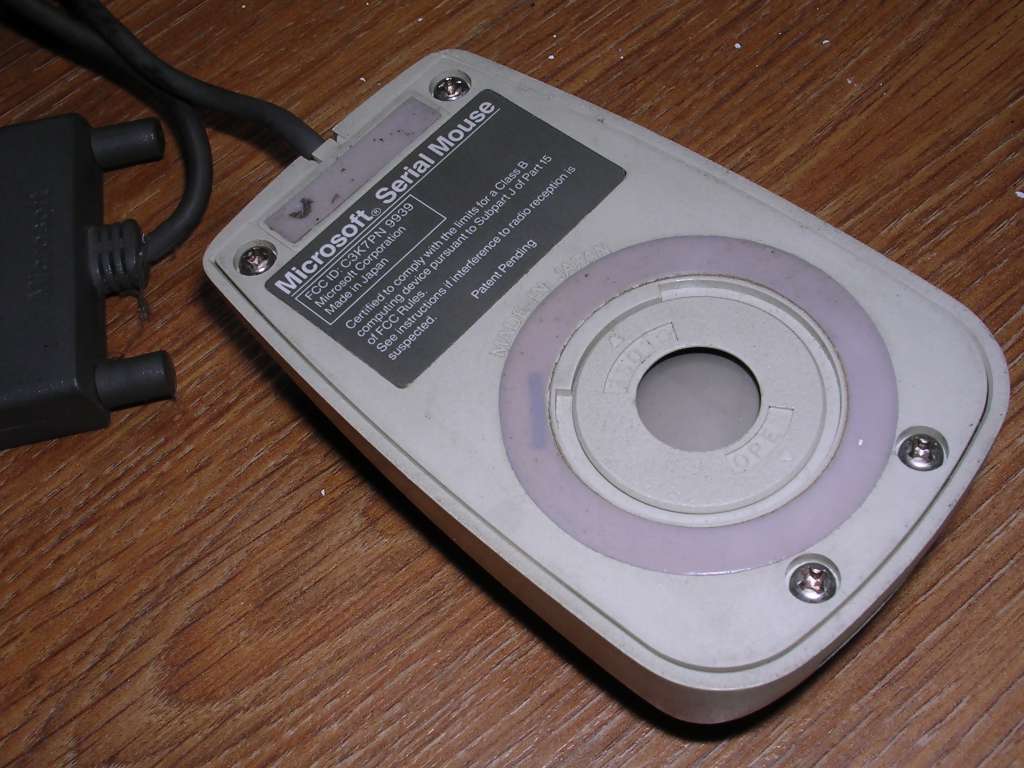 | Information: Origins of this mouse starts in early 1980s, when Microsoft designed serial port mice for Xerox. In 1985 they made a PC version, but there is a confusion about its versions. Although it has the old shape similar to ones made for Xerox and later PC, this one must be a bit newer as it has a converter to connect it to 9-pin serial port, and these ports were not massively present in older (first half of 1980s) PCs. Its sliding part is round which makes it move well in all directions, but unfortunately it makes its bottom dirty very quickly - it needs cleaning more frequently. |