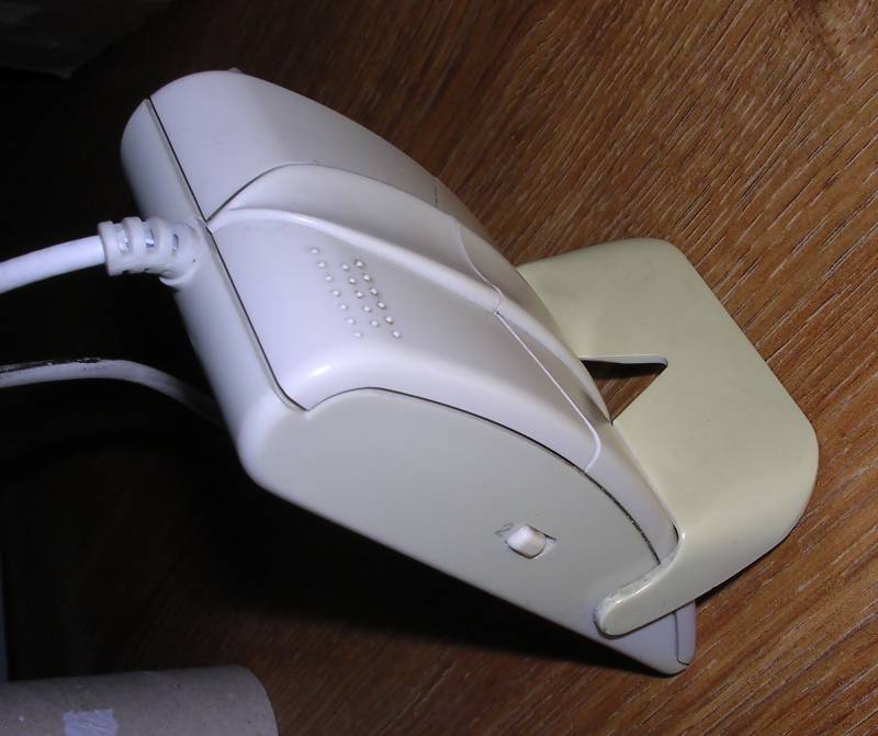 | Information: A4Tech made some interesting computer peripherals, and this is one of the designs which were never adopted by users. This mouse had part of a rear casing on a small hinge. By putting it down, mouse could be held with a palm. When it was put up, it forced finger grip, in which mouse is moved mostly with fingers. After using it was possible to just make this mouse stand vertically and not occupy so much space. These mice were not popular too much, as its design was quite eccentric as for PC mice. It was marketed since before Win95. |