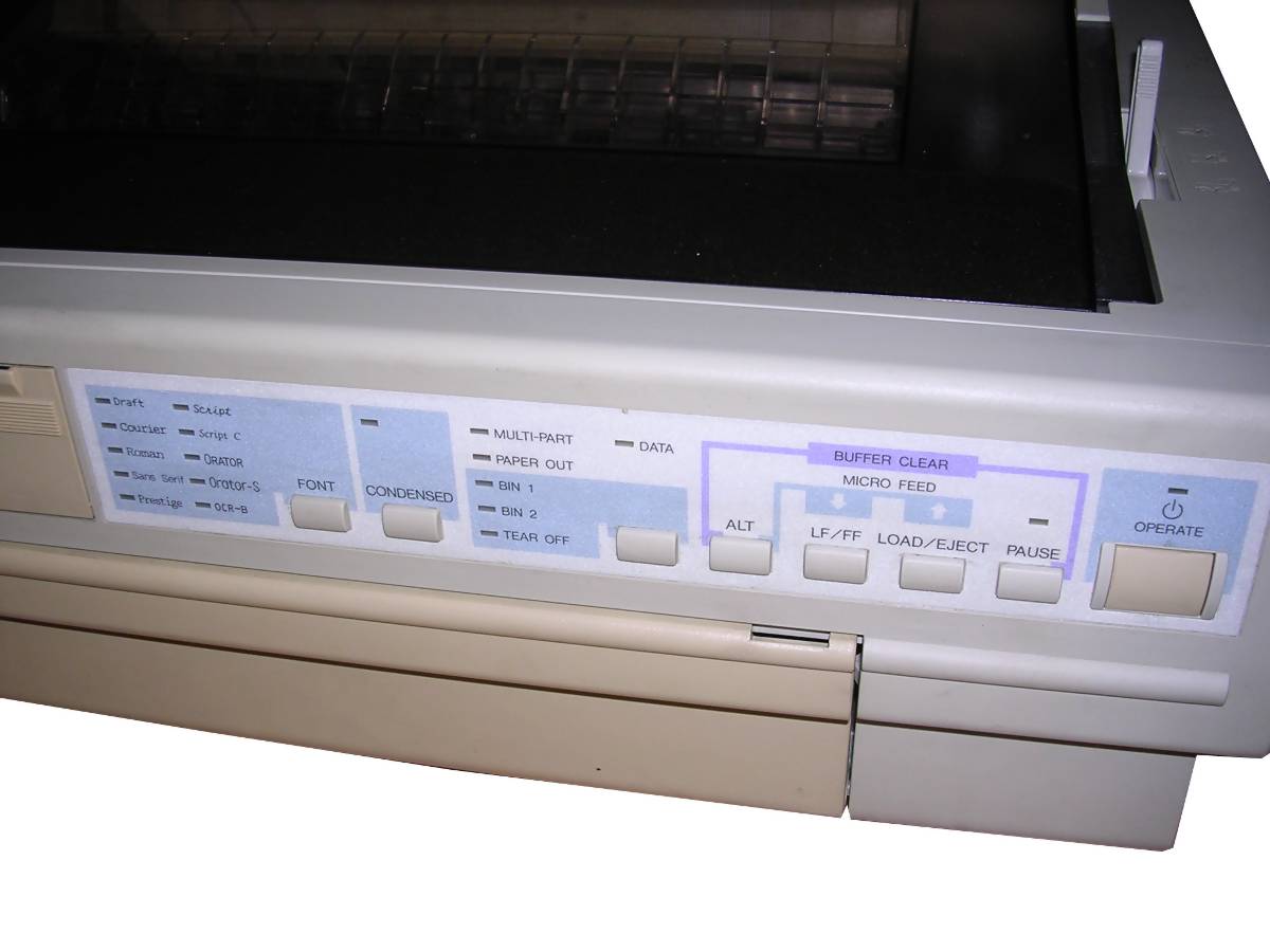 mostly used in ASCII printing. The problems are coming usually when it comes to using this printer not in an office system. Large vertical page margins make this unit not so usable for home printing and configuration, made using menu printed on paper, requires patience. The ribbon is in small cartridge which, contrary to many printers, moves with head. |