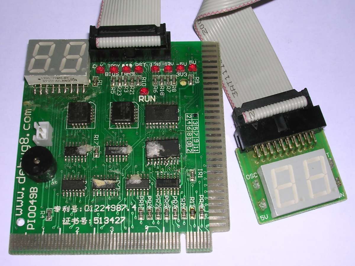 solder side with solder flux. These boards are made to show, on 7-segment display, a BIOS POST code. Before the failing system beeps for help, it puts codes for successive POST tests on a system bus. The board is made to capture and display these signals as well as states of some lines on bus. Another display can be connected on a ribbon cable to improve visibility. The problem with this board is quality. It is awful. |