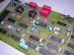 Notice old green capacitor and transistors in metal cans. This card has