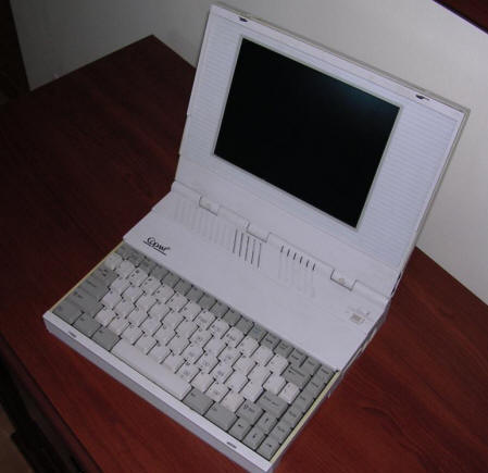Quite rare notebook with 386 processor. It is made with average quality components (LCD seems to be good qualioty) and has compact look. Copam was Taiwanese computer manufacturer which made some Z80 systems, desktop PCs and some laptops. It was not known much in Europe. BIOS of this laptop is made by Quadtel and is universal, it allows to set color or monochrome display and some other expansions not available in this computer.