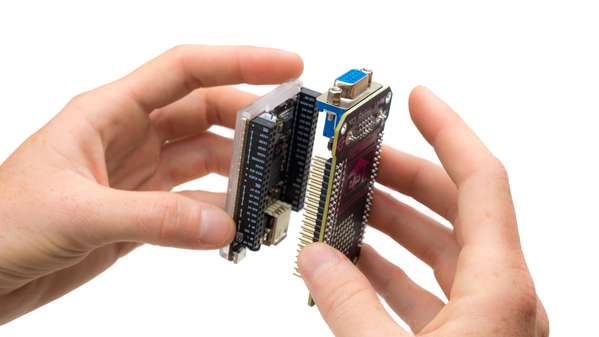 The VGA DIP allows C.H.I.P. to connect to a monitor via a standard 15-pin VGA cable at a maximum output resolution of 1600 by 900 at 60 Hz. Unlike the 16:9 ratio of HDMI, the VGA DIP usually outputs in a 4:3 aspect ratio.