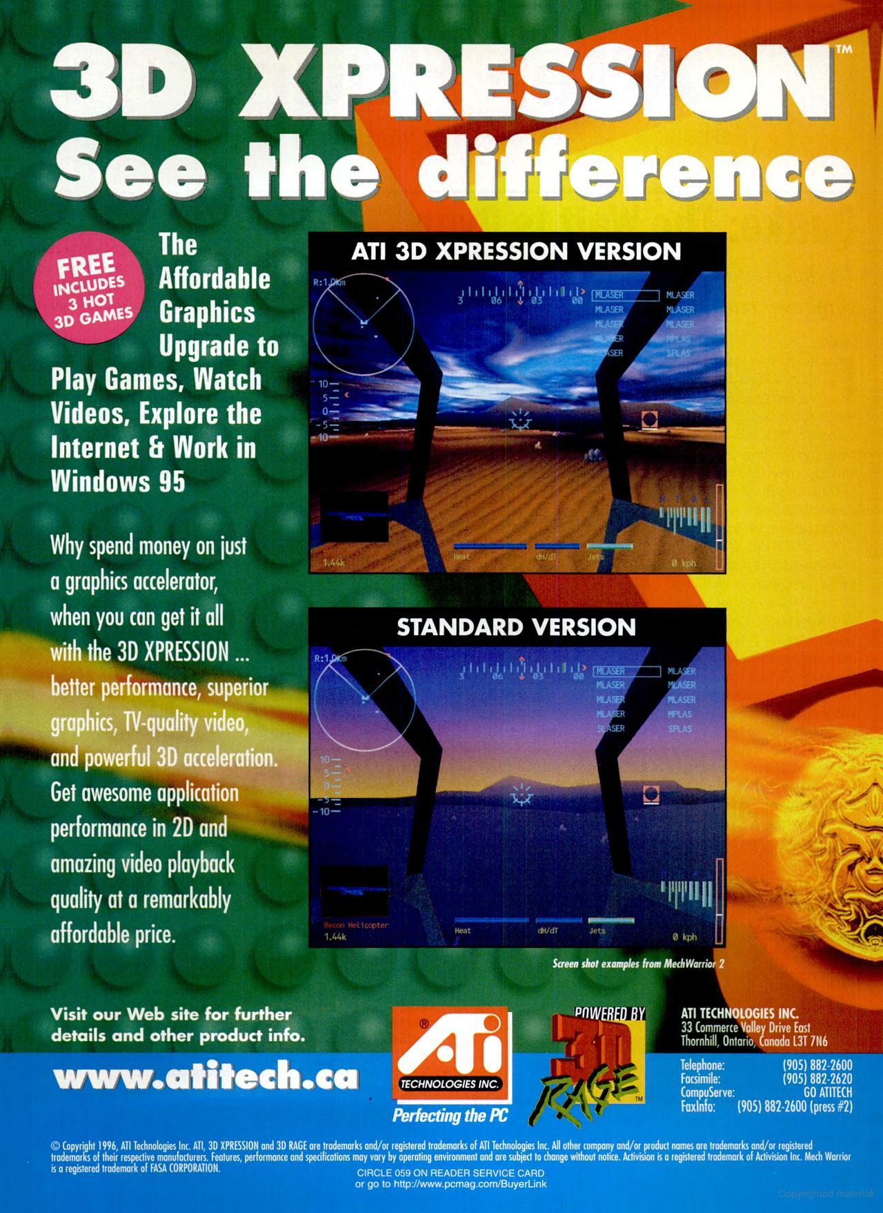 The 3D Xpression was released slightly after the 3DRage, and was the first to sport ATi's new chip, 3D Rage. As I understand it, only the 2 MB version was available at launch, with the 4 MB one arriving a year later.