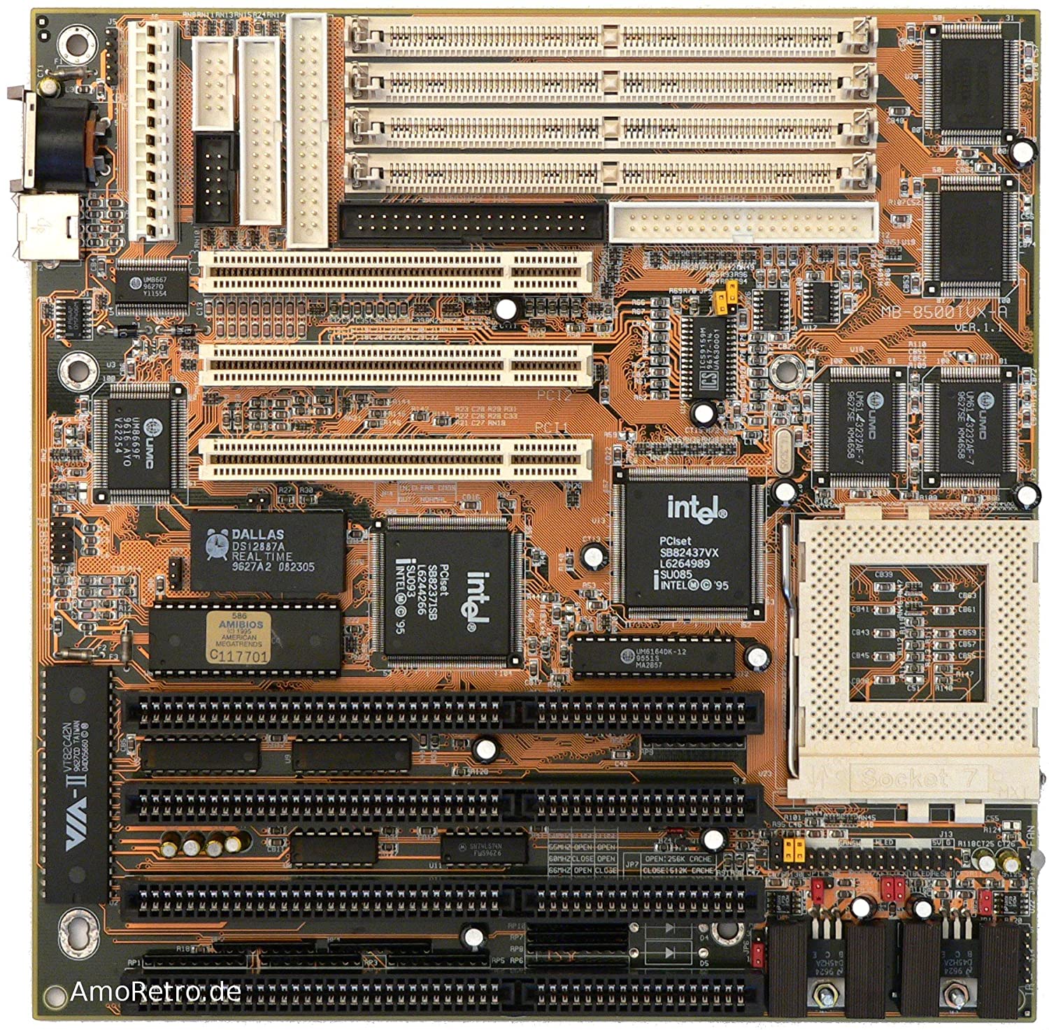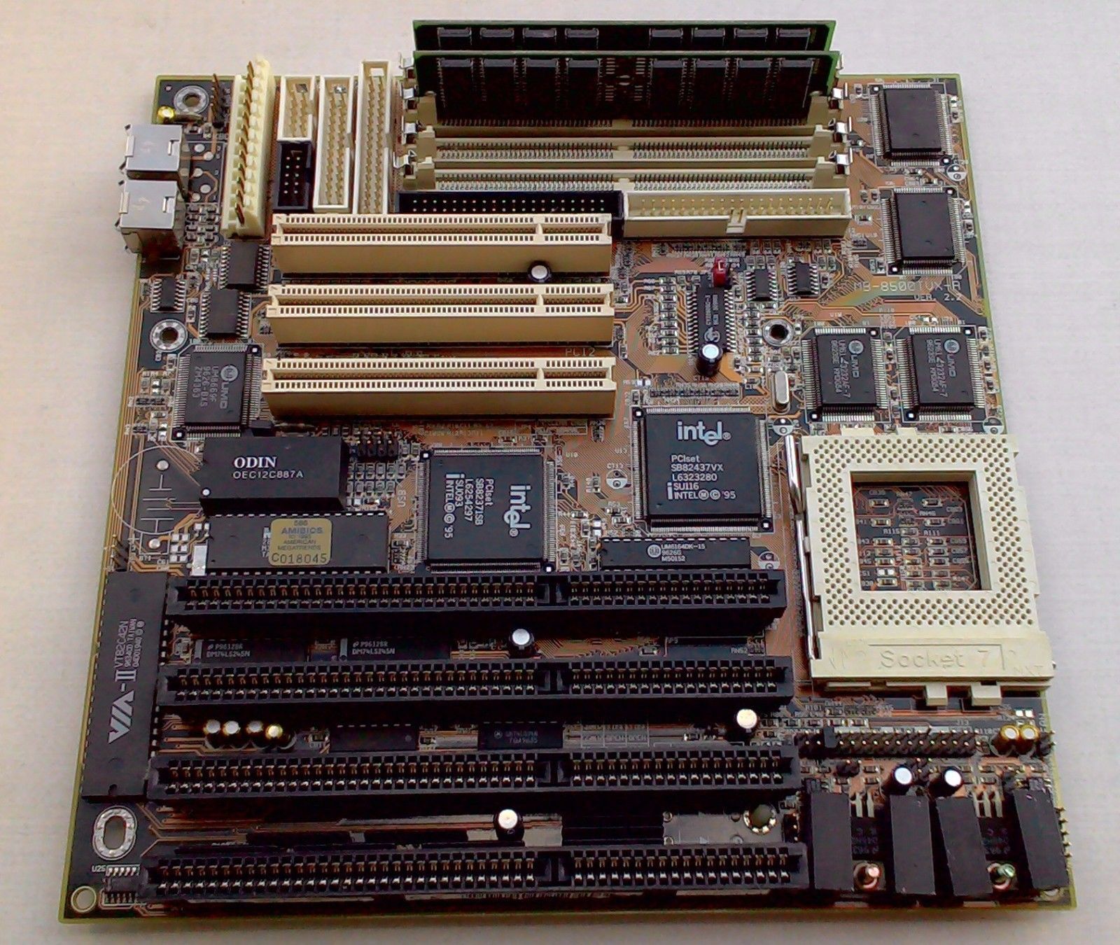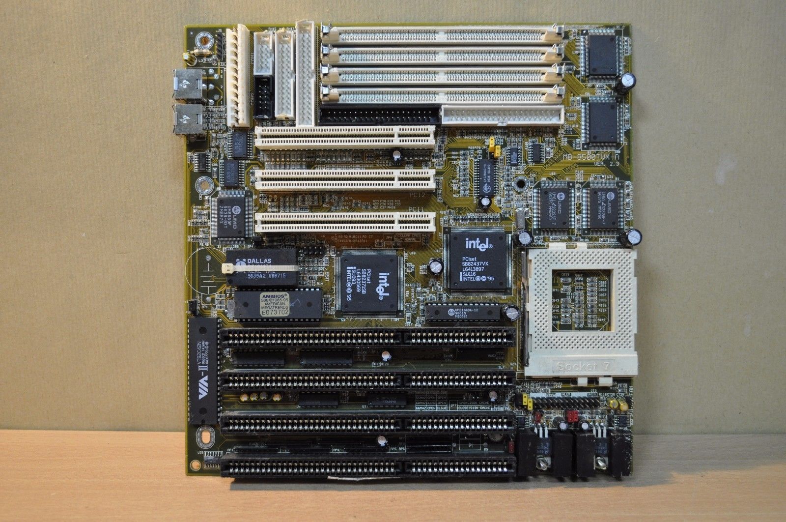 CPU support: Intel Pentium P54C/T and P55C/T, AMD K5, and Cyrix M1, MII.